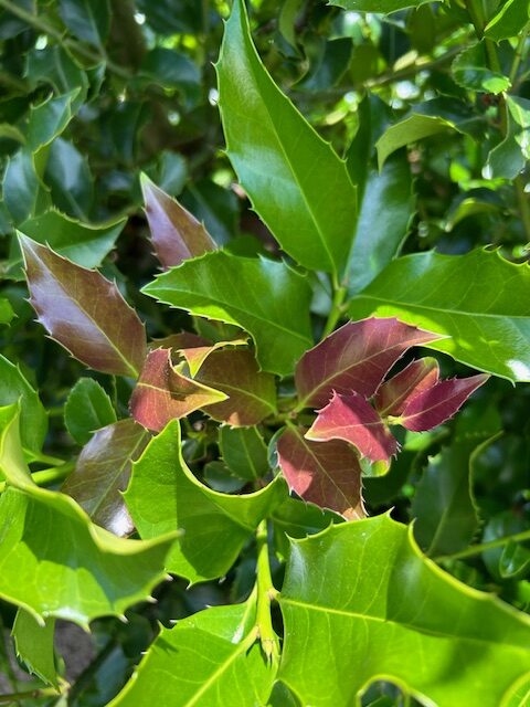 Pyramidal holly with distinctive dark foliage and large red fruit. The plant is one of the best hollies in terms of foliage quality and vigorous growth rate. This is a selection from Winn Nursery in Virginia. New growth emerges with a reddish tint. Mature leaves twist slightly along the margins for added interest. More cold hardy than many broad leaf evergreens.